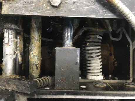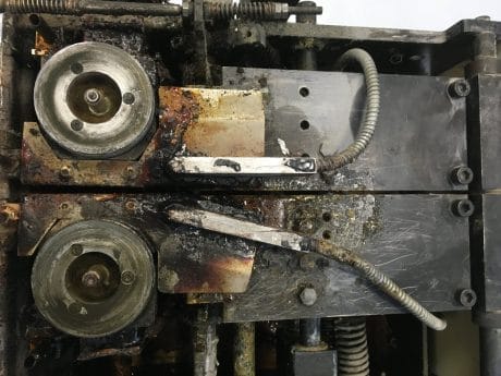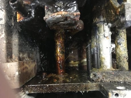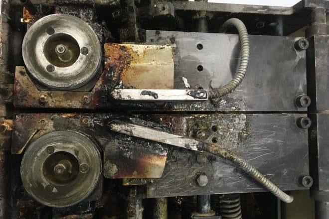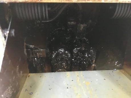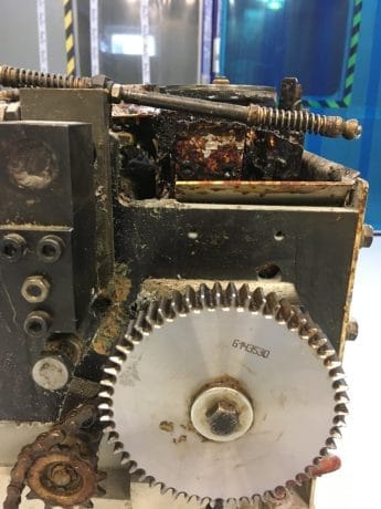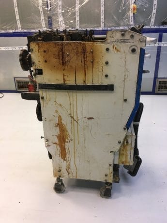 i takto znečištěné zařízení lze pohodlně vyčistit od všech nečistot suchým ledem až na podkladový materiál bez poškození